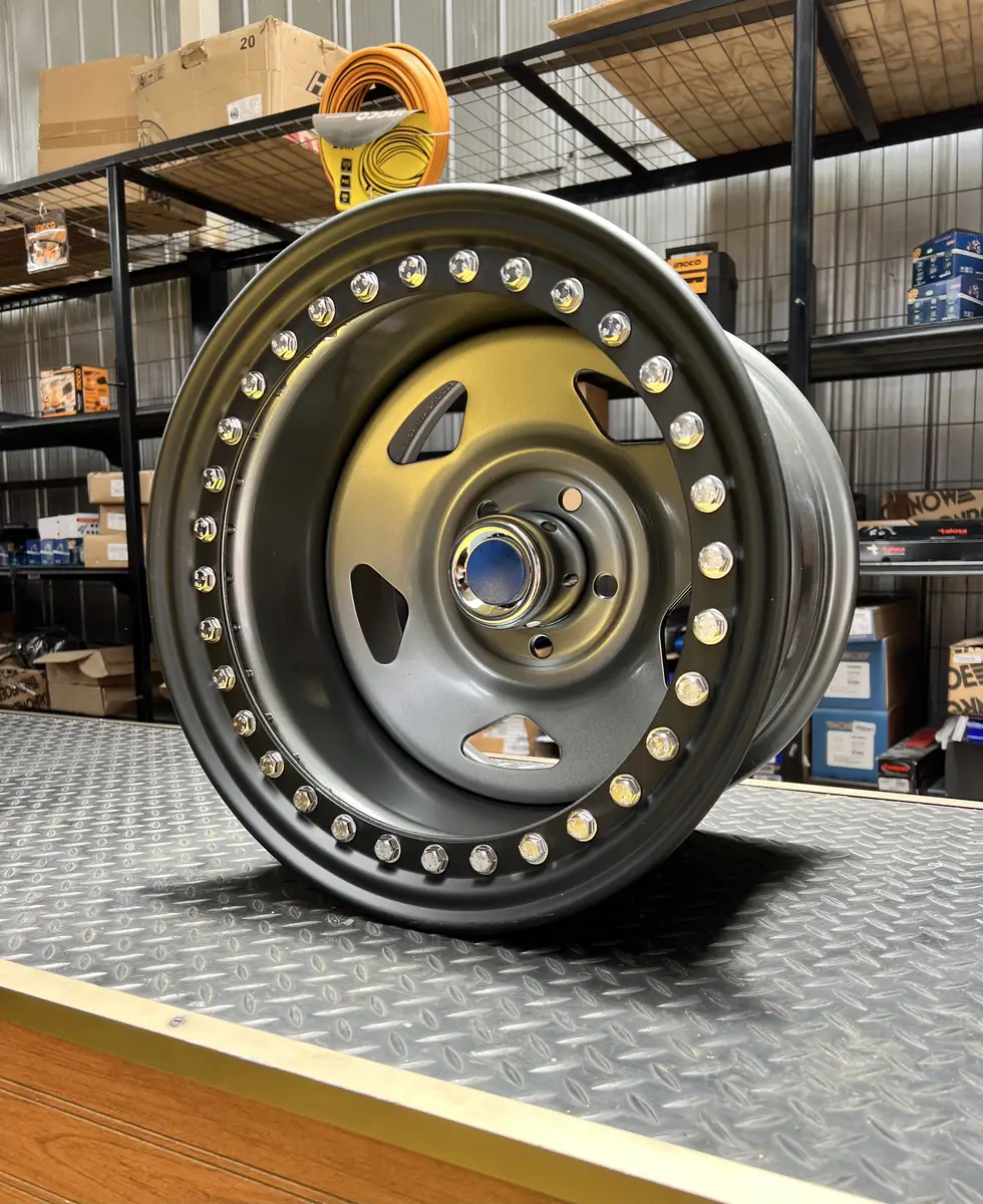 Llanta beadlock de 15×10 pulgadas. Llanta con sistema beadlock que asegura mecanicamente el neumatico al aro mediante un anillo de retencion atornillado. Permite rodar con presiones ultra bajas (hasta 5 PSI) sin riesgo de desllante. Esencial para off-road extremo en rocas, arena blanda y barro.
