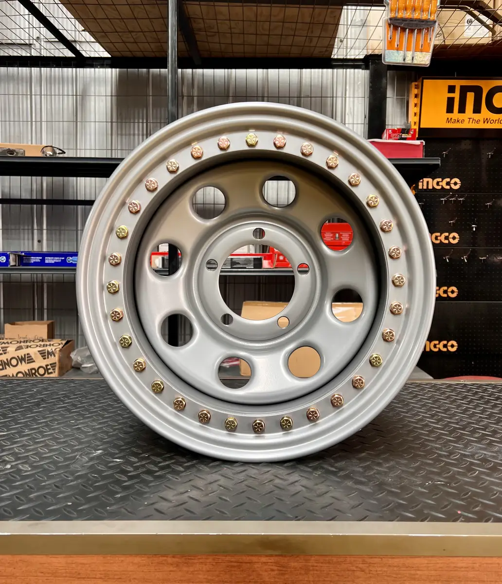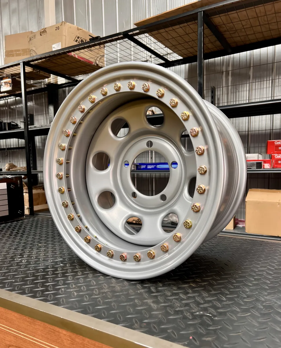Llanta beadlock de 15×8 pulgadas. Llanta con sistema beadlock que asegura mecanicamente el neumatico al aro mediante un anillo de retencion atornillado. Permite rodar con presiones ultra bajas (hasta 5 PSI) sin riesgo de desllante. Esencial para off-road extremo en rocas, arena blanda y barro.