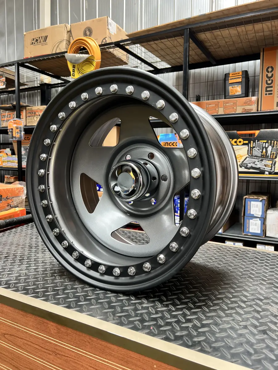 Llanta beadlock de 17×10 pulgadas. Llanta con sistema beadlock que asegura mecanicamente el neumatico al aro mediante un anillo de retencion atornillado. Permite rodar con presiones ultra bajas (hasta 5 PSI) sin riesgo de desllante. Esencial para off-road extremo en rocas, arena blanda y barro.